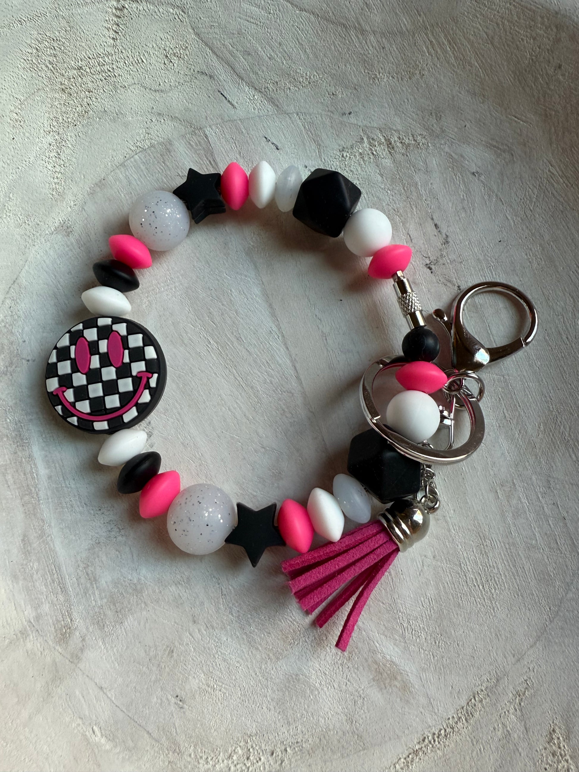 Retro Smiley Checkered Face Wristlet - Black/Pink